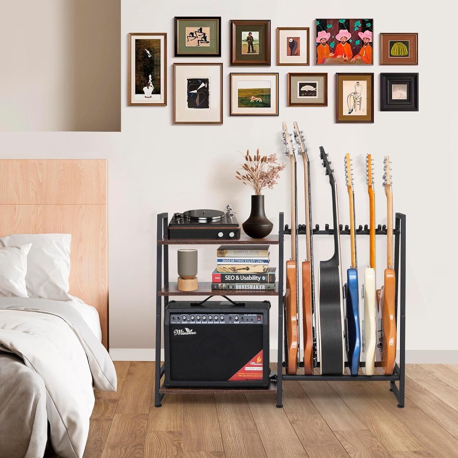 Adjustable Multi-Guitar Stand & Amp Rack Holder, Rustic Finish