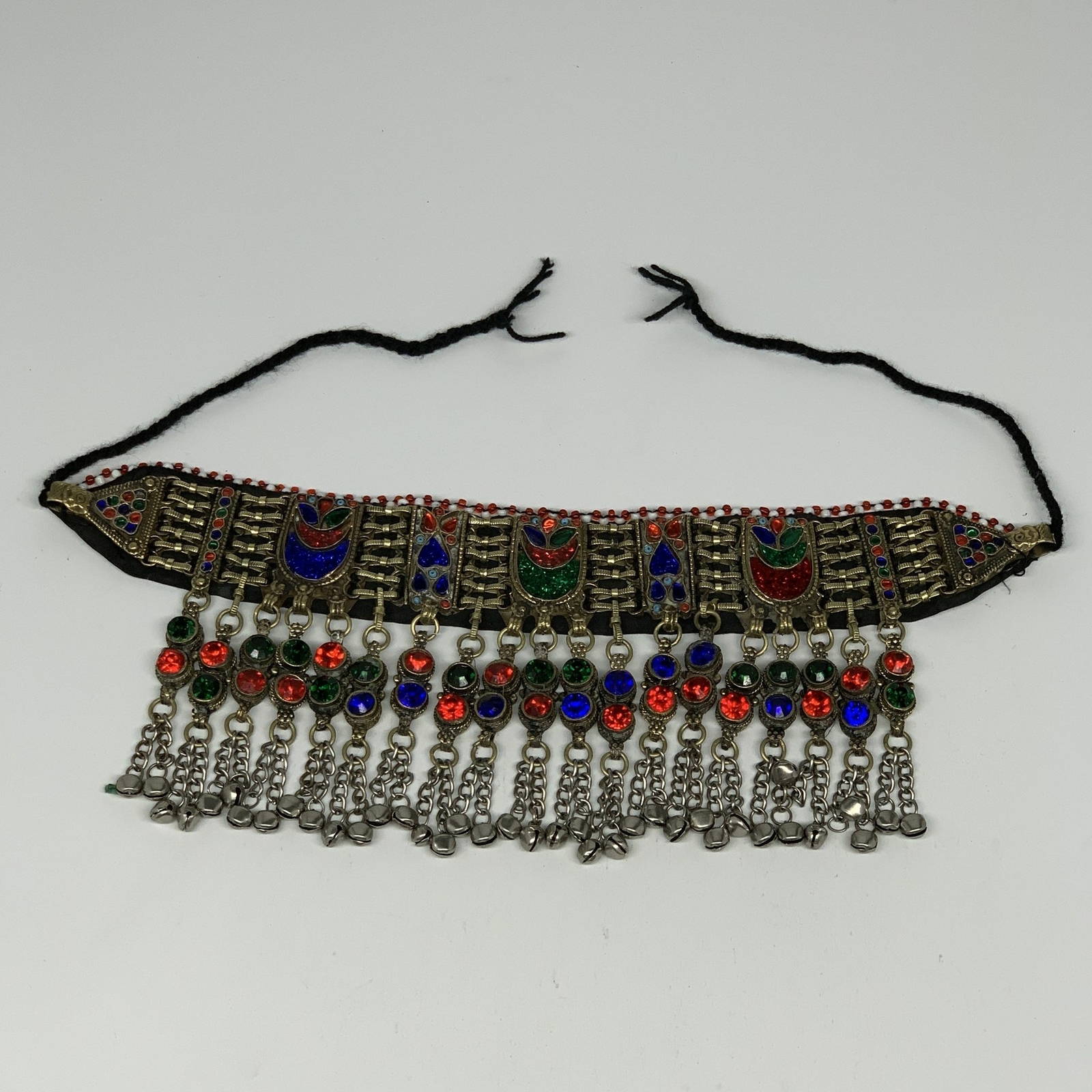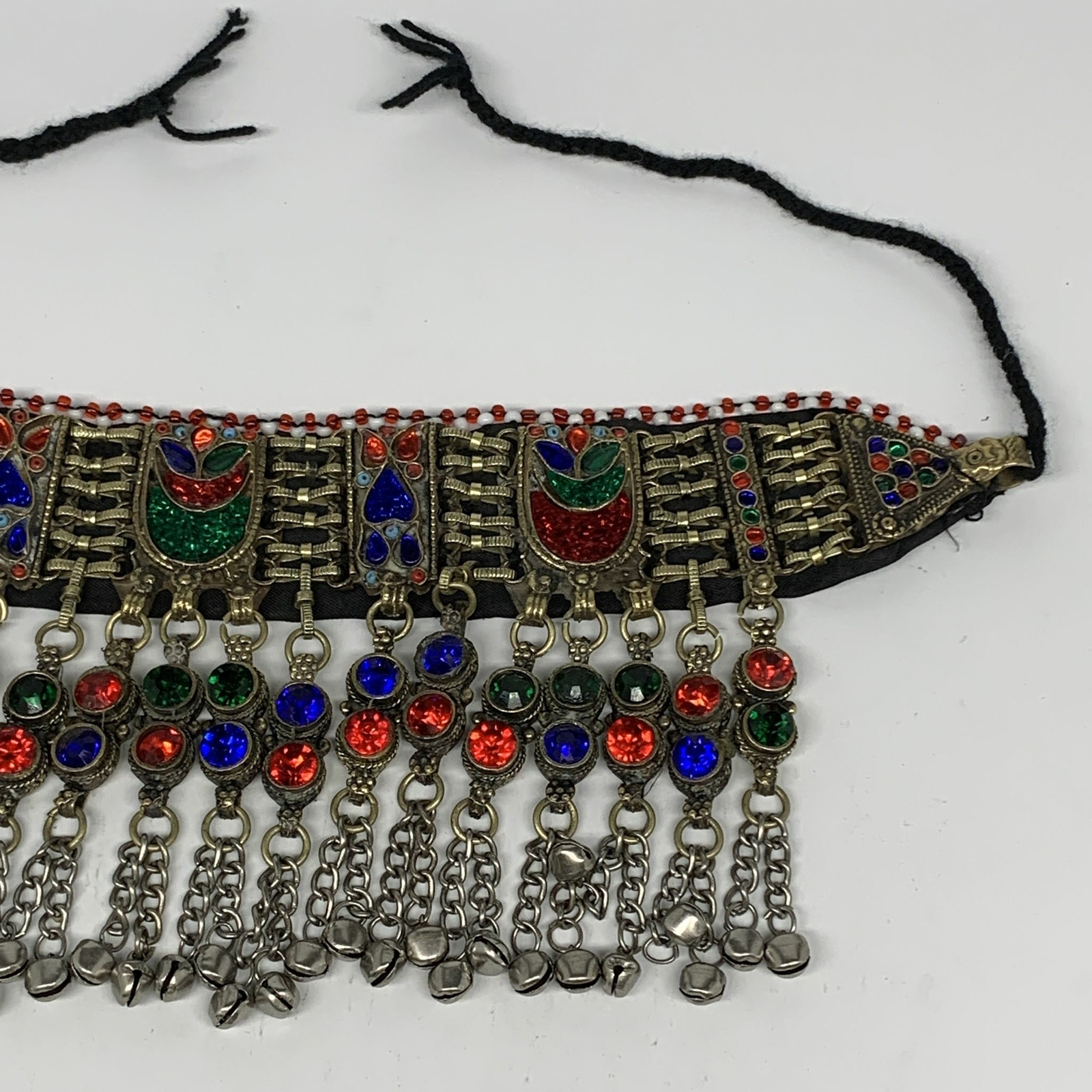 305g, 12"x4.5"Kuchi Choker Necklace Multi-Color Tribal Gypsy Bohemian,B14097 Weight: About 305 Grams Length End to End (W Thread): About 26" ( Including Black Thread ) Length Actual Choker without Thread: About 12" Vertical: About 4.5" Colorful cabs used in the chokers are not real stone. They are plastics or glass. No real stone used. Buyer will receive the exact item as pictured! Please look at the images carefully before purchasing! Although we hand select our jewelries, but still tribal Jewelries may have some wears & tears, missing beads or glasses, dangles, bells and jingles..etc so, please look at at the images carefully before purchasing. We took several images and very close up photos are taken to show you exactly what you will be receiving. The metals used in these kind of jewelries are called different names, some call it German Silver, some called it Gypsy and some call it Alpaca Silver or they could be just brass. We cannot confirm. Actual item may differ slightly than the image due to image quality, lightening, Contrasts, resolutions, and other factors. However, in most cases, actual items look better than the images.